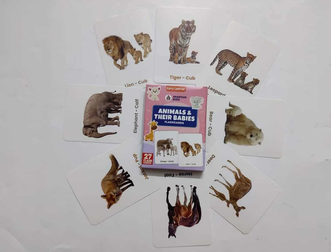 Animals and Their Babies Flash Cards is an engaging early learning educational set designed for young children to easily recognize animals and their young ones. With realistic images, clear labels, and sturdy cards, this flash card set makes learning fun, interactive, and memorable.
