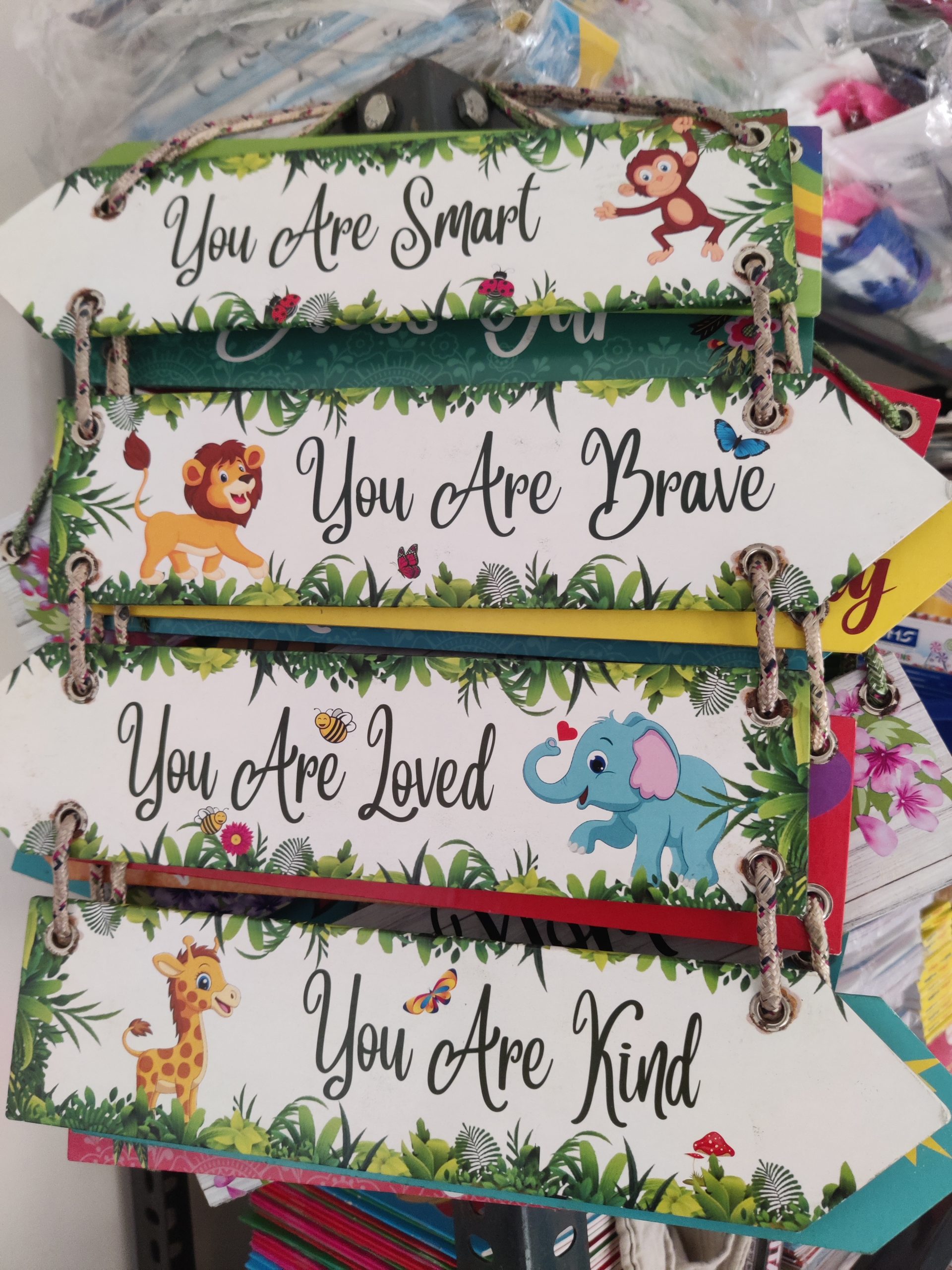 Fill your space with encouragement, confidence, and positivity using this beautifully designed Self Motivating Hanging Wall Décor. Featuring adorable animal illustrations and heartwarming affirmations like “You Are Smart”, “You Are Brave”, “You Are Loved” and “You Are Kind”, this hanging is perfect for nurturing a positive mindset in kids and adults alike.