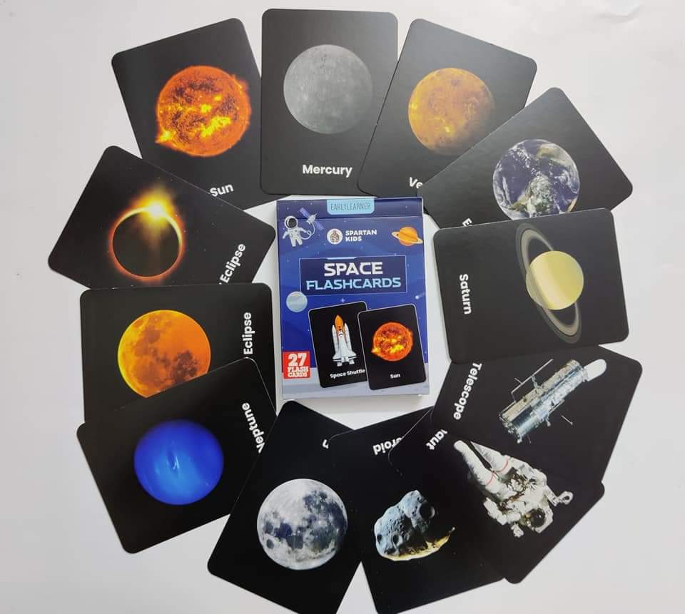 Space – Flash Cards introduce young learners to the fascinating world of space in a fun and visual way. Featuring planets, the sun, moon, eclipses, satellites, astronauts, and space equipment, these flash cards spark curiosity and make early science learning exciting and easy to understand.